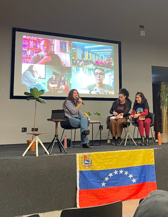 The other guest speaker is Cira Pascual Marquina, a professor of Political Studies at the Universidad Bolivariana de Venezuela. She is speaking with big eyes from the commune where she actually lives, with ten thousand others. She underlines twice that the communes are supported by the government. She is sat under a tree, fronds moving and out of the Zoom window. The police do not enter here, she explains. There is the popular defence committee for that. Afterwards we walk into the frozen world and I think about the palm trees and feel a deep comfort to imagine her going about her day, the same day on the calendar as mine.