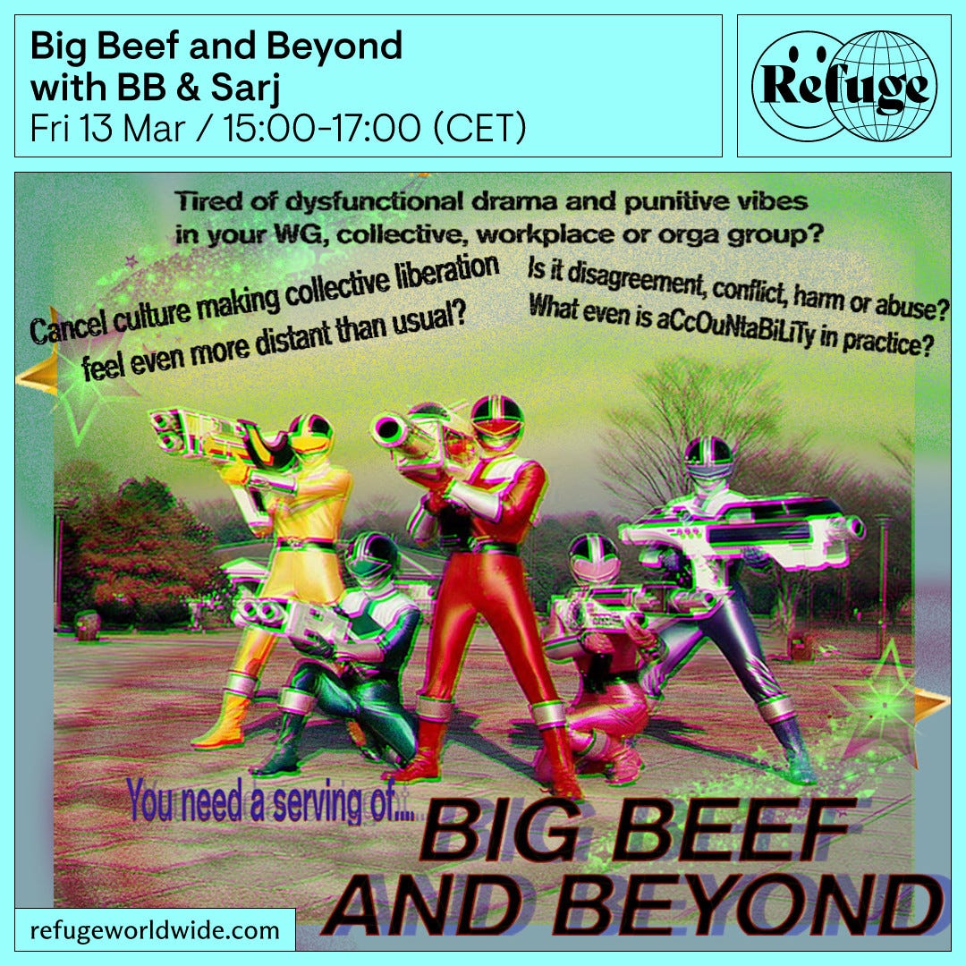 My guest on this month’s radio show, which is all about conflict cultures through the lens of our work in Big Beef and Beyond, is fellow Refuge Worldwide resident Sarj. Sarj is true master facilitator, lord of the quiet work of holding intense contradictions while insisting on our right to be who we are in all our faults especially when things get hairy. I have been working with them on this since they came to an early session I ran and now I have performed an entrapment to get them to be my homie.